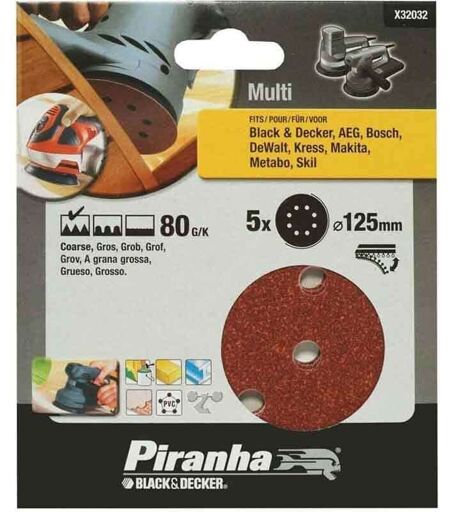 Black & Decker Dischi abrasivi 125 mm grana 80 per levigatrici Black and decker