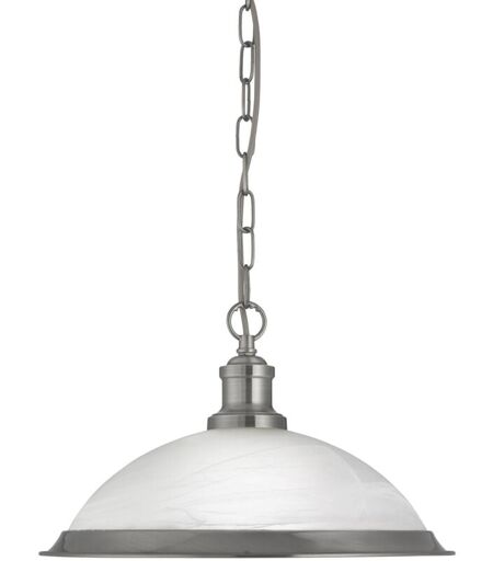 Collezione Bistro ART DECO' Questa lampada a sospensione Bistro in argento satinato con paralume in vetro marmorizzato ha un aspetto semplicistico che aggiungerà un tocco retrò. Ricordando lo stile dei classici ristoranti e bistrot, la plafoniera è composta da un classico paralume art déco rifinito in un elegante argento satinato, con vetro acido per fornire effetti di luce puliti. Questa plafoniera dona uno stile distintivo ed elegante a qualsiasi ambiente e la catena può essere regolata per diverse altezze del soffitto. ...