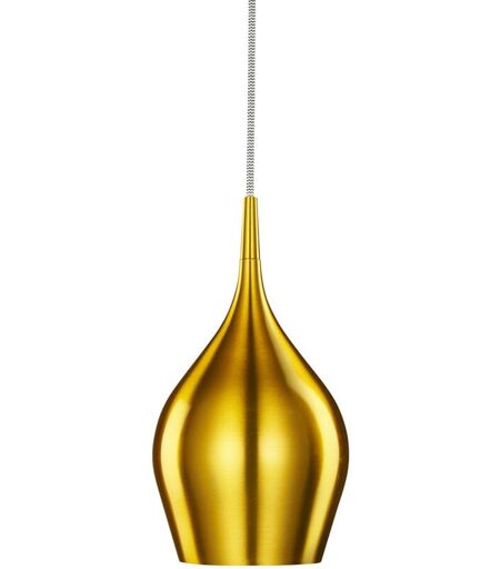 Collezione Vibrante GRAZIOSO E VIBRANTE Questa vibrante lampada a sospensione a campana dorata ha un sofisticato aspetto artigianale. Il bel paralume dorato pende elegantemente dal soffitto, fornendo un attraente fascio di luce. E rende ogni stanza contemporanea, vibrante e chic. La lampada può essere facilmente regolata con la sospensione a filo per diverse altezze del soffitto. ...