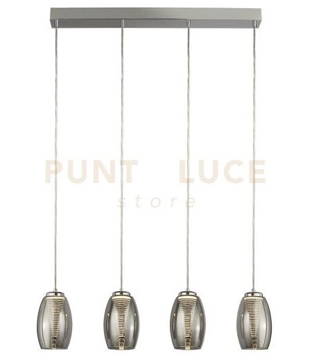 Searchlight Lampada A Sospensione Cyclone 4lt Bar - Metallo Cromato E Vetro Fumã©