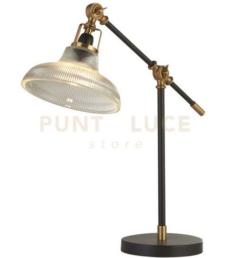 Searchlight X Berwick Lampada Da Tavolo - Nero E Ottone Con Vetro Trasparente A Coste