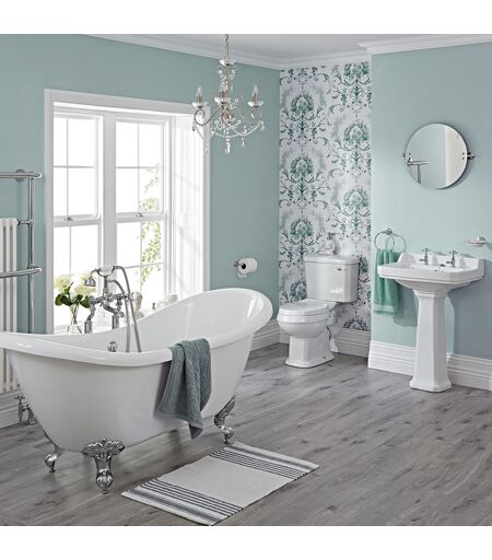 HudsonReed Set Bagno con Vasca Freestanding, Lavabo Su Colonna, Sanitario WC Monoblocco e Rubinetteria - Carlton