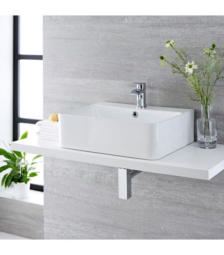 HudsonReed Lavabo Bagno da Appoggio Rettangolare Bianco con Rubinetto 155 x 520mm - Exton