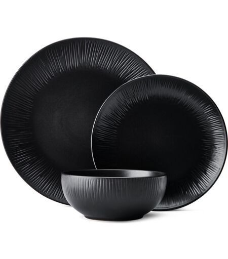 Mikasa Jardin Midnight - Stoviglie de ceramica de 12 pezzi per 4 persone con piatti da portata, piatti laterali e ciotole, nero, in confezione regalo