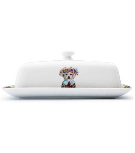 Mikasa Tipperleyhill Portaburro decorativo de in ceramica con coperchio, illustrato con un eccentrico cucciolo per conservare il burro, conservare e