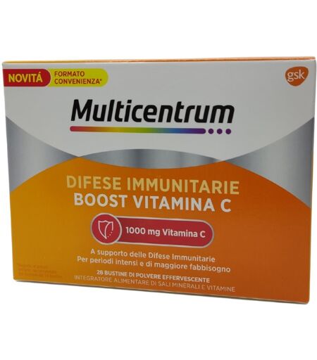 Multicentrum DIFESE IMMUNITARIE BOOST VITAMINA C - Descrizione Integratore alimentare di sali minerali e vitamine con 1.000 mg di vitamina C. Una formula specifica che supporta la normale funzione del sistema immunitario per affrontare la stagione invernale con: - vitamina C, D, B6, B12, acido foli… ...