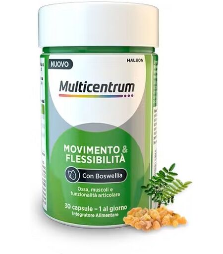 Multicentrum MOVIMENTO & FLESSIBILITÀ - Descrizione Integratore alimentare. Un mix di vitamine manganese ed estratto di Boswellia specificatamente formulato per ossa muscoli e funzionalità articolare. Multicentrum Movimento & Flessibilità contiene: - stratto di Boswellia nota per la fisiologica … ...