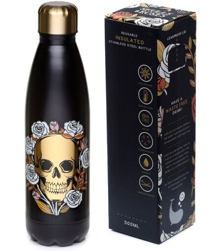 PUCKATOR Bottiglia Termica Acciaio 500ml - Teschi con Rose -