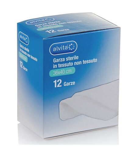 alvita Garza sterile in tessuto non tessuto Descrizione Dispositivo Medico CE Classe IIA. Dimensione: 36 x 40 cm. Formato Confezione da 12 pezzi. Cod. 274250 ...