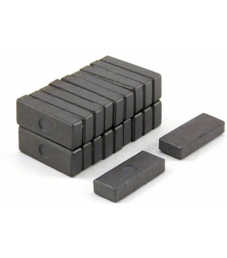 Questi magneti rettangolari, conosciuto anche come magneti in ceramica, vengono calamitati con polarità nord-sud a righe che si concentra il magnetismo su un lato. Il palo Pitch gestisce tutta la larghezza del magnete e hanno anche una fossetta sul viso non magnetico per una facile identificazione. Magneti in ferrite hanno una elevata resistenza alla corrosione e demagnetisation e il loro grande vantaggio è che possono funzionare a temperature fino a 180 gradi Celsius. Questi magneti sono l' ideale per molte applicazioni in cui la forza non è il fattore più importante come bricolage, modellismo e altre applicazioni tecniche. ...