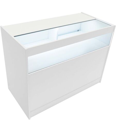 Monster Cable - Bancone da Negozio led B1200 Bianco – Vetrina con Ante Scorrevoli Bloccabili, 2 Chiavi, 3 Ripiani (1 a Vista, 2 Chiusi), Illuminazione