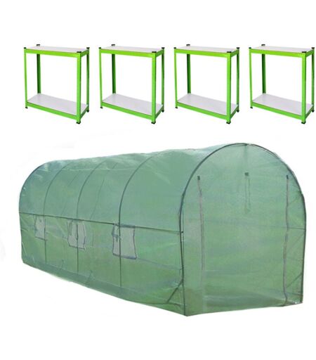 Proteggete le vostre piante dalle intemperie con il polytunnel da 6 m x 3 m e le scaffalature per serre. Crea il tuo microclima personale fornendo temperature e umidità più elevate per frutta, verdura e qualsiasi altra pianta che stai coltivando al di fuori della loro stagione abituale. Impermeabile e resistente al vento, questo polytunnel è la soluzione perfetta per proteggere le vostre colture. Nelle stagioni più calde, inoltre, le piante saranno protette dalla forte luce solare dannosa grazie alla protezione UV fornita dalla spessa copertura in PE. Nonostante la struttura robusta, questo polytunnel è facile da costruire e offre la possibilità di montarlo temporaneamente quando necessario. Grazie alle porte su entrambe le estremità, l'accesso è facile, rendendo la cura delle piante il più conveniente possibile. Con questa straordinaria soluzione per il giardinaggio, il tempo non fermerà il vostro pollice verde! Completate la vostra collezione con due scaffalature resistenti ...