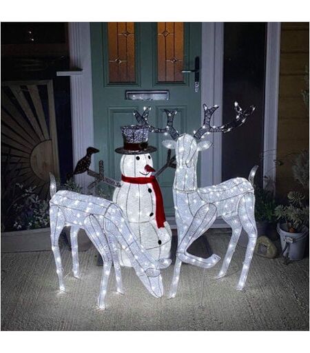 Monster Cable - MonsterShop - Renne di Babbo Natale & Pupazzo di Neve Luminoso Decorazione da Esterno per la Casa Luci led per Giardino - Bianco