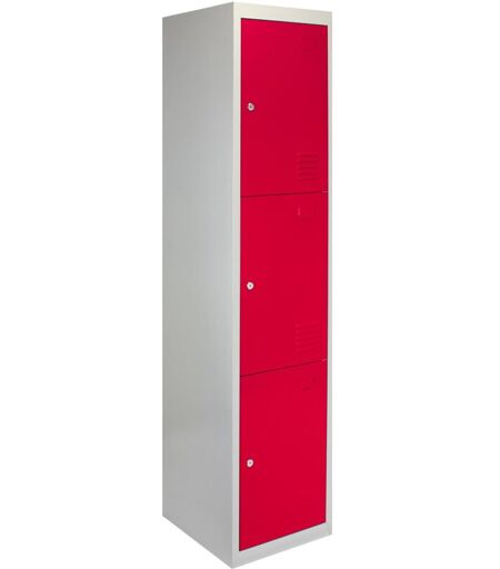 Monster Cable - MonsterShop - Armadietto da Montare con 3 Porte Rosse in Acciaio 45cm x 38cm x 180cm per Scuole, Palestre e Spogliatoi