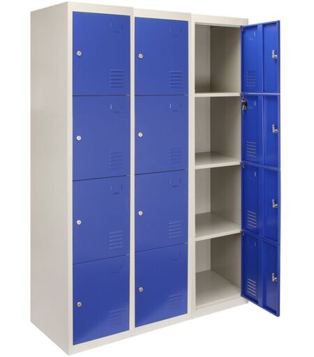 Monster Cable - MonsterShop - 3 Armadietti da Montare con 4 Porte Blu in Acciaio 45cm x 114cm x 180cm per Scuole, Palestre e Spogliatoi