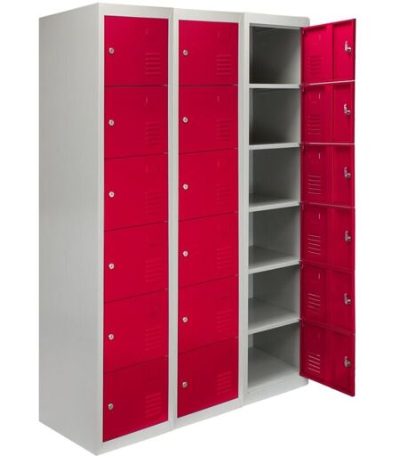 Monster Cable MonsterShop - 3 Armadietti da Montare con 6 Porte Rosse in Acciaio 45cm x 114cm x 180cm per Scuole, Palestre e Spogliatoi