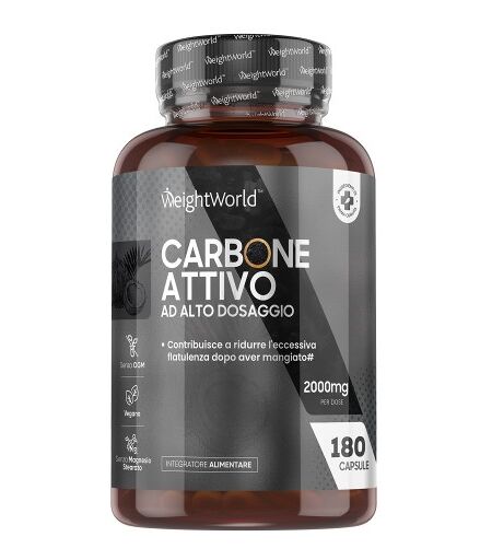 WeightWorld Carbone attivo 2000mg 180 Capsule polvere di carbone di cocco per la digestione, l'aerofagia e il gas
