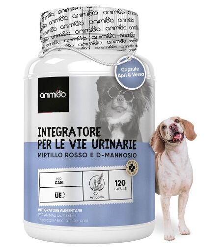 Animigo Aiuto urinario per cani - 120 capsule - Integratore vie Urinarie Cane - Con Mirtillo Rosso Americano