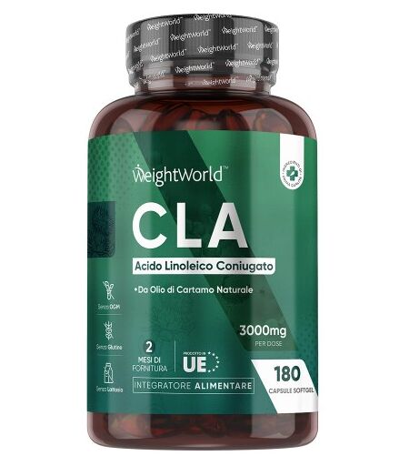 WeightWorld CLA Acido Linoleico Coniugato 3000mg per 180 Cla Capsule Softgels Scorta per 2 Mesi di Olio di Cartamo 100% Naturale