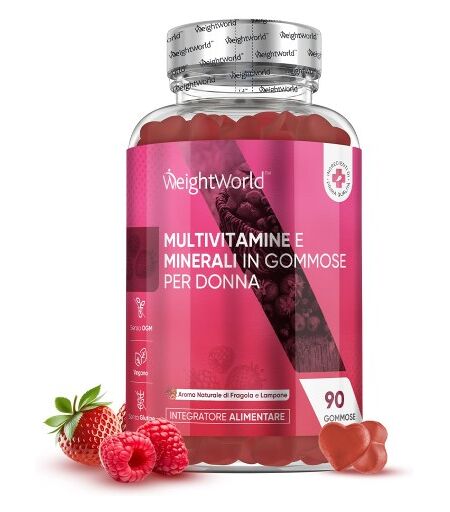 WeightWorld Multivitaminico Donna 90 Caramelle Gommose (3 Mesi) 13 Vitamine e Minerali per Energia, Pelle, Capelli e Sistema Immunitario