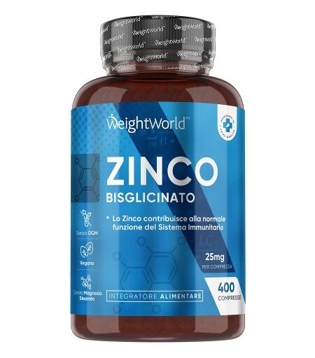 WeightWorld Zinco ad alto dosaggio 25 mg 400 capsule Integratore di zinco