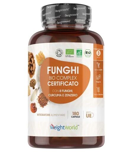 WeightWorld Complesso organico di funghi 180 capsule 8 Mushroom Complex Integratore micoterapico per il supporto immunitario e altro ancora