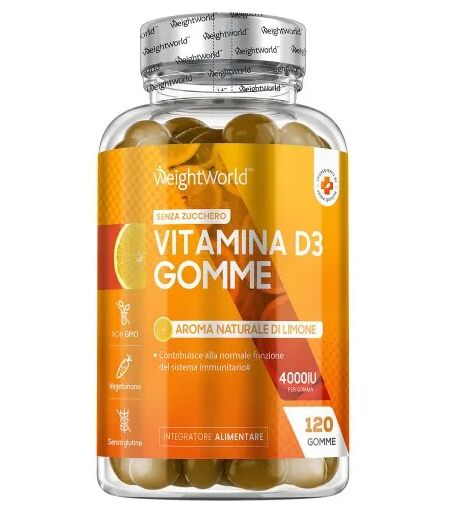 WeightWorld Vitamina D3 4000 UI 120 Gommine al Limone 4 Mesi di Scorta Per Ossa, Articolazioni e Sistema Immunitario
