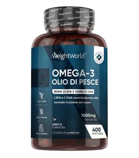WeightWorld Omega 3 Capsule Softgel 400 Capsule 1000 mg Integratore di Omega 3 per il benessere fisico e mentale
