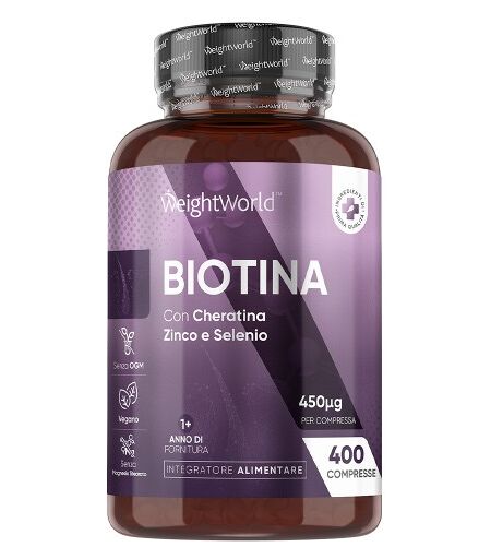 WeightWorld Biotina con Zinco Selenio e Cheratina 450 mcg 400 Compresse 1 Anno di Fornitura