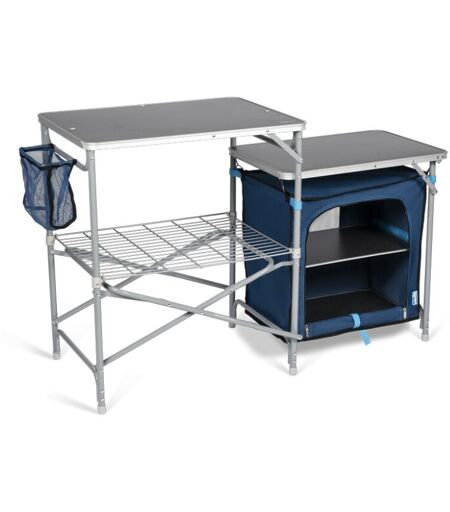 Piano di lavoro extra large Tavolo allungabile adatto come piano di lavoro o piano cottura Il supporto per piano di lavoro o fornello si adatta ai fornelli da campeggio più diffusi (fino a 60 cm di larghezza) Dispensa con due ripiani e anta con cerniera per riporre oggetti utili ...