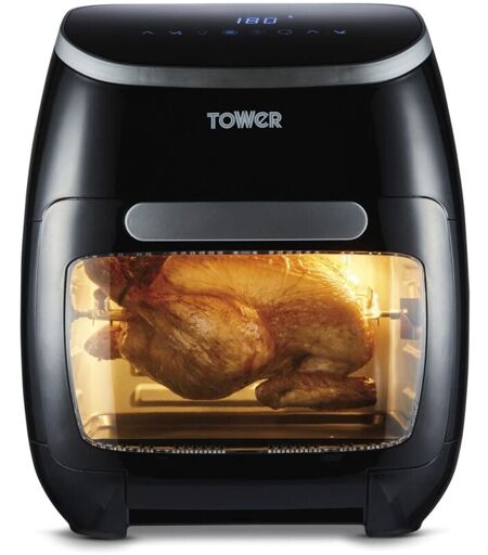 Questo air fryer oven digitale Tower è un accessorio da cucina multifunzionale. Dotato di funzionalità 5-in-1, è utilizzabile come friggitrice ad aria, forno a girarrosto, grill, o per cottura al forno e alla griglia. La tecnologia Vortx e il sistema di rotazione a 360 gradi ti permettono di cucinare con una quantità minima di olio. L'aria calda circola rapidamente e uniformemente, cuocendo i tuoi ingredienti a puntino e con una consistenza croccante. Il tutto con il 99% in meno di grassi, per una cottura più buona e super salutare. Grazie alla sua potente tecnologia, questa friggitrice ad aria girarrosto può cuocere fino al 30% più velocemente di un forno convenzionale, cucinando un pollo da 1 kg in 40 minuti. L'ampia capacità da 11 litri offre spazio sufficiente per preparare un pasto completo per tutta la famiglia. I grandi controlli touch screen offrono temperature regolabili e 8 programmi di cottura automatica, che ti permettono di cucinare con precisione patatine fritte, ...