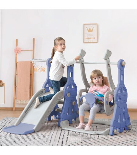 MERAX Scivolo per bambini, scivolo da giardino, scivolo multifunzione 4 in 1 per bambini con supporto da basket, scala da arrampicata, altalena per uso