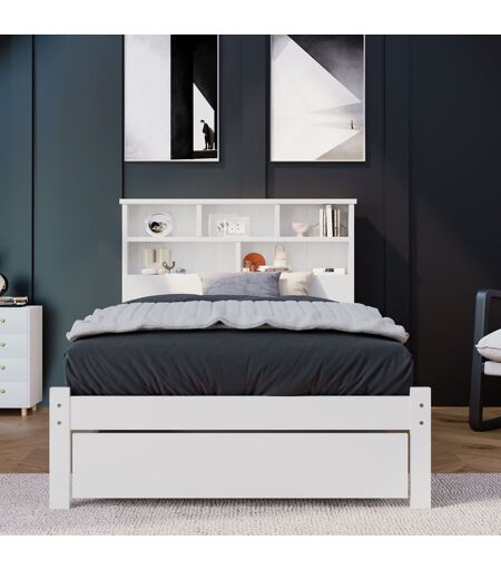 MERAX Letto singolo 90x200 cm, con cassetti e doghe, libreria, Stile Contemporaneo, Bianco