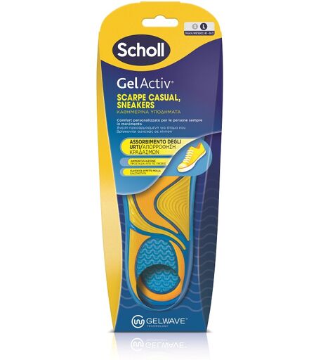 Scholl GelActiv - Descrizione Solette per scarpe casual. Comfort personalizzato per le persone sempre in movimento. L'ammortizzazione in memory foam con tecnologia GelWace si adatti ai piedi ad ogni passo. Rivestimento "fresh feet" per piedi asciutti, freschi tutto il giorno. Avvertenze Interromper… ...