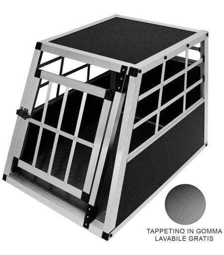 Transportate I vostri animali domestici in sicurezza con le gabbie trapezioidali per veicoli in alluminio di MonsterShop. Specifiche: Gabbia per trasporto animali trapezioidale con fronte a 65° adatte per bauli di macchine Fatte in robusto alluminio con porta serrabile e tappetino in gomma lavabile GRATIS Dimensioni gabbia singola-media: 50cm (A) x 54cm (L) x 69cm (P) Peso; 8kg Telaio: Alluminio 0.9 x 2-3mm Pannelli in legno: MDF 8mm Spessore tappetino: 3mm Colore: Nero e argento Angolo posteriore: 90° Angolo frontale: 65° ...