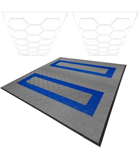 Trasforma il tuo garage, officina o palestra in uno spazio funzionale e dal design moderno con il nostro set di piastrelle ventilate per pavimento e sistema di illuminazione LED esagonale. Questa soluzione completa combina robustezza, stile ed efficienza, creando un ambiente ideale per lavorare o da mostrare con orgoglio. Le piastrelle ventilate per pavimento, realizzate in 100% polipropilene, offrono una capacità straordinaria di supportare fino a 5 tonnellate per piastrella. Sono perfette per sostenere veicoli pesanti, macchinari e attrezzature, garantendo una durata eccezionale anche nelle condizioni più difficili. Il materiale resistente alle intemperie affronta senza problemi variazioni di temperatura e altre sfide ambientali, offrendo prestazioni affidabili nel tempo. Questo set include 165 piastrelle grigie, 60 blu e 60 bordi, coprendo una superficie di 36 metri quadrati in una configurazione semplice 15 x 15. Il sistema di incastro intelligente rende l’installazione rapida e ...