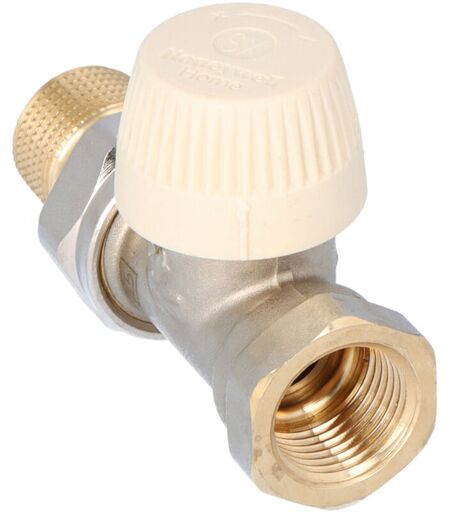 RESIDEO Valvola termostatica, diritta, inserto SX, con preregolazione, 1/2 pollice, filettatura interna, con attacco per radiatore con guarnizione metallo su