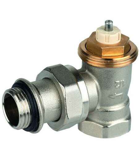 RESIDEO Valvola termostatica, angolo, inserto SX, con preimpostazione, 1/2 pollice, filettatura interna, con raccordo per radiatore a tenuta morbida