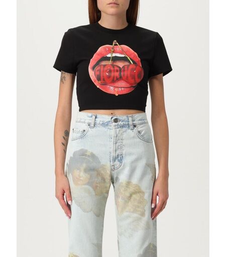 Fiorucci T-shirt crop in cotone stampata Nero Taglia M