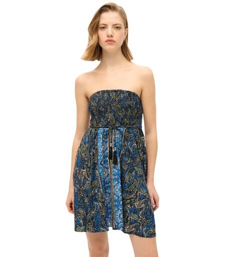 Superdry Vestito Corto Senza Maniche St Tropez Navy Leaf Paisley L