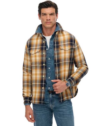 Superdry Camicia A Maniche Lunghe Merchant Heavy Homestead Yellow Navy Check S
