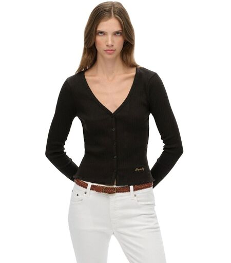 Superdry Maglietta A Maniche Lunghe Essential Button Thru Bison Black XL