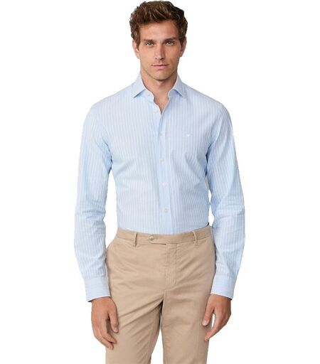 Hackett Camicia A Maniche Lunghe Textured Cotton Stripe Sky Blue L