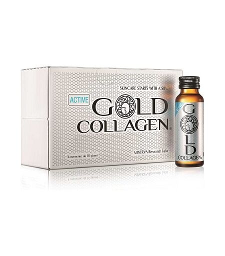 GOLD COLLAGEN ACTIVE - Descrizione Integratore alimentare liquido con formula brevettata contenente collagene idrolizzato glucosamina cloridrato condroitina solfato L - carnitina maca essiccata N - acetilglucosamina acido ialuronico estratto di pepe nero edulcoranti naturali vitamine e sal… ...