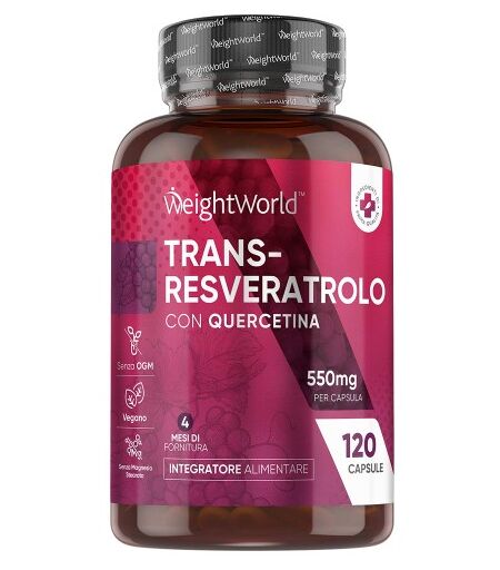 WeightWorld Resveratrolo 120 Capsule 550 mg Naturale Antiossidanti Integratori con Proprietà Antinvecchiamento e Antinfiammatorie