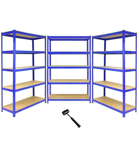 Organizza il tuo spazio di lavoro con questi 3 scaffali blu Monster della gamma T-Rax Sono extra larghi, 100% senza bulloni, forti e ognuno misura 120cm (larghezza) x 45cm (profondità) x 180cm (altezza) Caratteristiche: 3 scaffali della gamma T-Rax per garage e officina con 5 ripiani Possono essere divisi a metà per creare ottimi piani di lavoro Solidi pannelli in MDF per tutti i ripiani Piedi modellati che forniscono extra stabilità Incredibile tolleranza di peso di 280kg per ripiano (se il peso è uniformemente distribuito) In acciaio resistente 1 martello di gomma GRATUITO ...