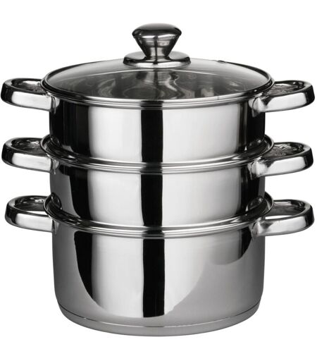 Premier Housewares - Multi Steamer- Vaporiera, Acciaio inossidabile, Coperchio in vetro, Argento, Ø22 x H25 cm