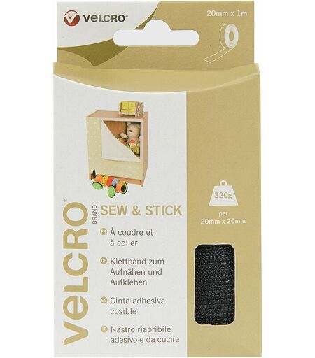Velcro Brand Nastro riapribile adesivo e da cucire 20mm x 1m Nero