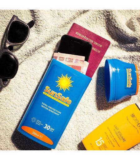 SunSafe – la cassaforte a forma di crema solare; Sembra una normale crema solare, ma è in realtà un nascondiglio per gli oggetti di valore; Nascondi le tue carte di credito, i contanti, le chiavi e il cellulare; Progettata per contenere la maggior parte degli smartphone; Facile da aprire e chiudere; Resistente agli spruzzi d'acqua; Dimensioni: 9 x 4,5 x 21,5 cm; Peso: 120g circa; NOTA: Il testo stampato è in inglese; ...