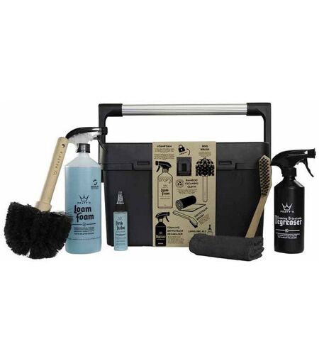 Il kit di pulizia Peatys include il detergente in schiuma Loam, lo sgrassatore per catene, il lubrificante per catene, un asciugamano, la spazzola per la pulizia della palude e la spazzola per la pulizia dei dettagli. ...